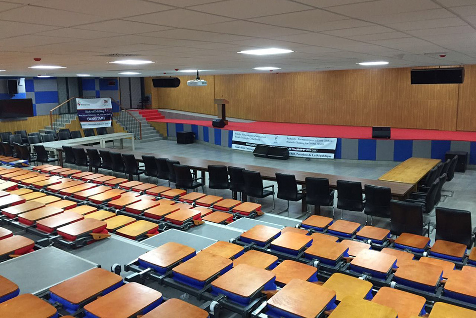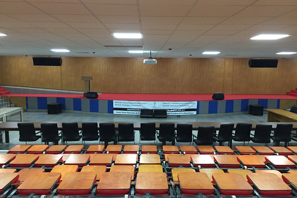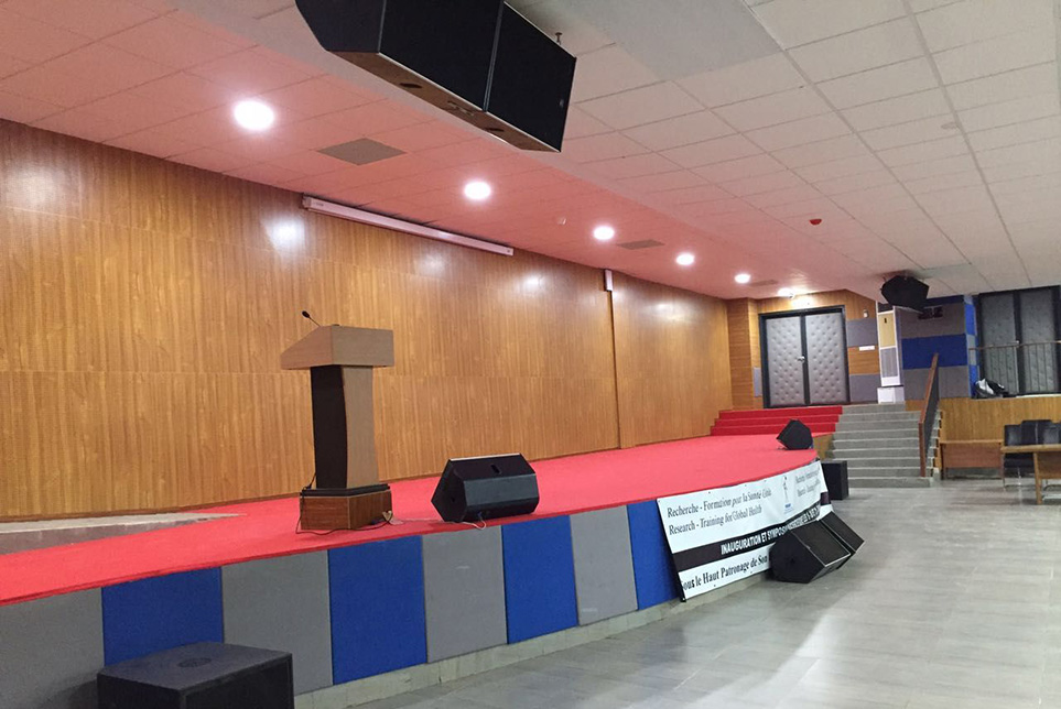 IRESSEF國(guó)際多功能廳位于塞內(nèi)加爾總統(tǒng)府國(guó)際會(huì)議中心內(nèi),是塞內(nèi)加爾政府的重大會(huì)議和新聞發(fā)布會(huì)的重要場(chǎng)所。該國(guó)際會(huì)議中心內(nèi)設(shè)兩個(gè)大型會(huì)議場(chǎng)所,面積分別為680平方米和300平方米,均配備專業(yè)音響擴(kuò)聲系統(tǒng) 、大屏顯示系統(tǒng)、同聲傳譯系統(tǒng)和中央控制系統(tǒng)。