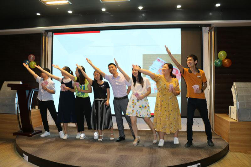 隨后,主持人梅姐公布第二季度的銷售業(yè)績,在銷售精英和其他部門同事的不懈努力之下,公司在第二季度超額完成了季度目標(biāo),作為獎(jiǎng)勵(lì),后勤部門均獲得公司特別頒發(fā)的獎(jiǎng)金,同時(shí),公司將于7月下旬組織旅游,消息一出,全場嘩然,大家都樂開了花。