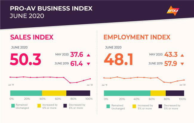 專業(yè)AV商業(yè)指數(shù)報告來自對AVIXA Insights社區(qū)的每月調(diào)查,該社區(qū)是行業(yè)成員的研究社區(qū),跟蹤商業(yè)AV的業(yè)務趨勢。該報告實際上包括兩個擴散指數(shù):AV銷售指數(shù)(AVI-S)和AV就業(yè)指數(shù)(AVI-E)。在每種情況下,指數(shù)均高于50表示銷售或就業(yè)活動有所增加。